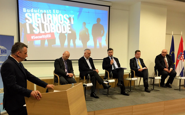 Uz zastupnika Plenkovića na konferenciji je govorio zastupnik u EP-u Jozo Radoš, sigurnosni stručnjak prof. Mirko Bilandžić te Zlatko Sokolar i Krešimir Perović iz MUP-a. U svojem izlaganju Plenković je izdvojio borbu protiv terorizma te kontroliranje izbjegličko-migracijskog vala kao dva ključna sigurnosna izazova s kojima je suočena Europska unija.