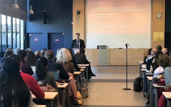 Predsjednik Vlade Plenković održao je na pariškom Institutu političkih znanosti Sciences Po predavanje na temu »Hrvatske perspektive i iskustva četiri godine nakon pristupanja Europskoj uniji«