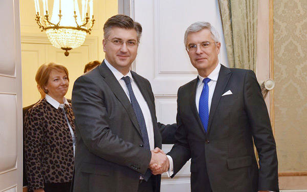 Premijer Plenković primio je u Banskim dvorima v. d. ministra vanjskih i europskih poslova Slovačke Ivana Korčoka, koji boravi u službenom posjetu Hrvatskoj