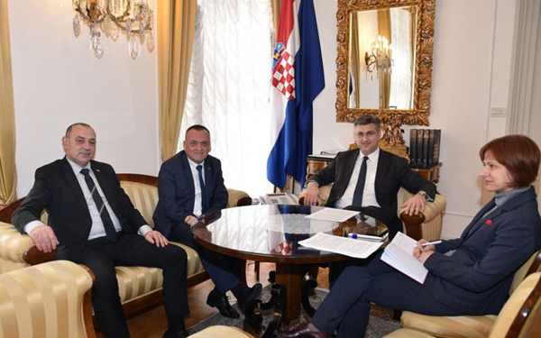 Premijer Plenković sastao se u Banskim dvorima s gradonačelnikom Grada Osijeka Ivicom Vrkićem i ministrom hrvatskih branitelja Tomom Medvedom.