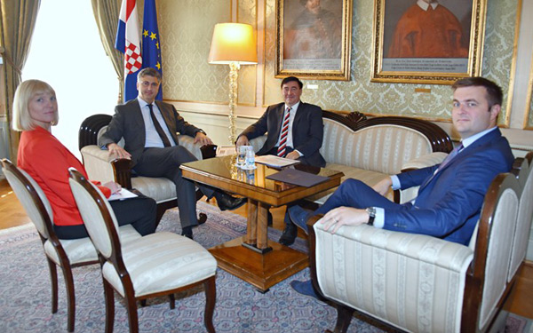 Premijer Plenković održao je prvi sastanak s novim predsjednikom uprave INA-e d.d Sándorom Fasimonom. Uz njega je bio ministar zaštite okoliša i energetike Tomislav Ćorić.