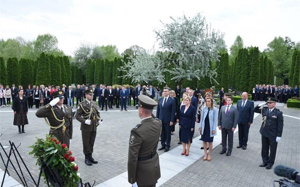 Zajednički vijenac u ime Republike Hrvatske položili su predsjednica Republike Kolinda Grabar Kitarović, predsjednik Vlade Andrej Plenković i izaslanica predsjednika Hrvatskog sabora Marijana Balić.