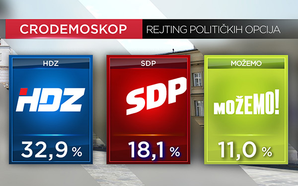 Prema prvom postizbornom CRO Demoskopu, na vrhu ljestvice preferencija političkih stranaka nalazi se HDZ s izborom od 32,9% ispitanika (prema 30,2% iz lipnja). SDP je drugi i bilježi potporu od 18,1% (prema 27,8% iz lipnja), a slijedi Možemo s 11%, Domovinski pokret Miroslava Škore s 8,6% te Most s 8,3%.