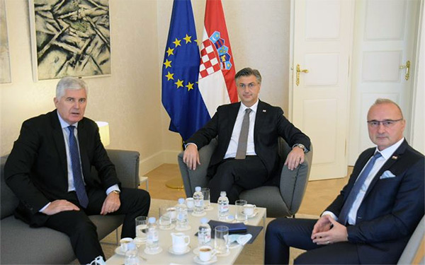 Predsjednik Vlade Andrej Plenković istaknuo je da je pitanje položaja Hrvata u BiH tema od vitalnog hrvatskog interesa. Naglasio je potporu Hrvatske postizanju što skorijeg dogovora među političkim strankama u BiH i usvajanju promjena Izbornog zakona do kraja godine, a kojima će se u potpunosti poštovati ravnopravnost i legitimna zastupljenost konstitutivnih naroda u Predsjedništvu i najvišim predstavničkim institucijama BiH.