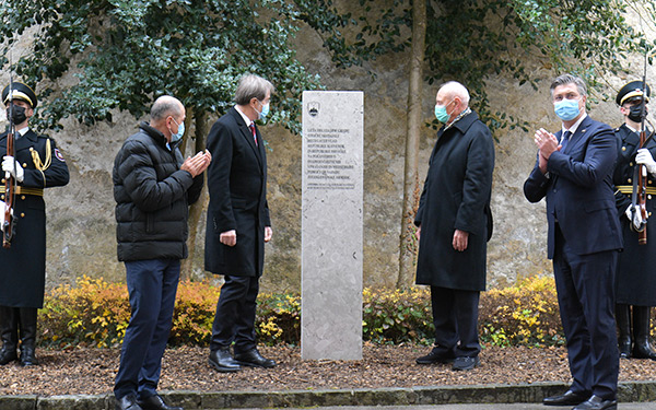 Uz predsjednika hrvatske Vlade Plenkovića i njegova slovenskog kolegu Janeza Janšu, otkrivanju spomen-ploče kojom se obilježava sastanak delegacija dviju vlada na kojemu se 1991. u dvorcu Otočec razgovaralo o pitanjima neovisnosti i međusobnoj pomoći u slučaju napada JNA, sudjelovali su bivši premijeri Franjo Gregurić i Alojz Peterle