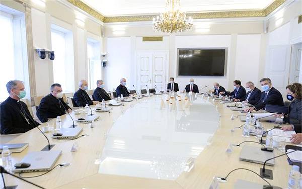 Izraženo je zadovoljstvo kvalitetnim odnosima Vlade i Katoličke Crkve, kao i nastavkom dijaloga o brojnim društvenim temama te pitanjima koja se tiču Hrvatske biskupske konferencije i Vlade