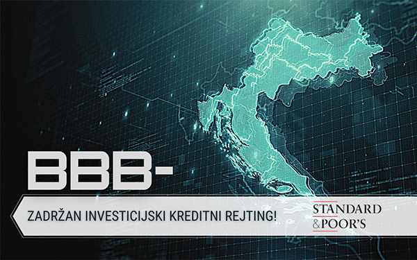 Agencija Standard & Poor's potvrdila je u petak rejting Hrvatske 'BBB-/A-3' i stabilne izglede, izdvojivši među rizicima globalnu geopolitičku neizvjesnost zbog ruske agresije na Ukrajinu koja bi mogla utjecati na globalnu potražnju, turizam i inflaciju.