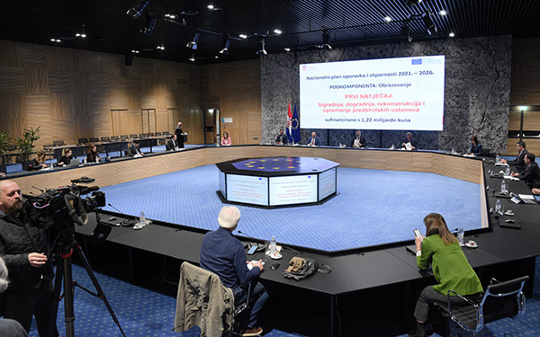 Predsjednik Vlade Andrej Plenković predstavio je natječaj natječaj sufinanciran iz Nacionalnog programa oporavka i otpornosti, u vrijednosti 1,22 milijardi kuna, u okviru poziva "Izgradnja, dogradnja, rekonstrukcija i opremanje predškolskih ustanova".