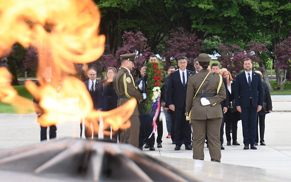 Prigodom obilježavanja Dana državnosti i 30. obljetnice međunarodnog priznanja Hrvatske predsjednik Vlade Andrej Plenković i predsjednik Hrvatskoga sabora Gordan Jandroković položili su vijence kod Spomenika domovini u Zagrebu