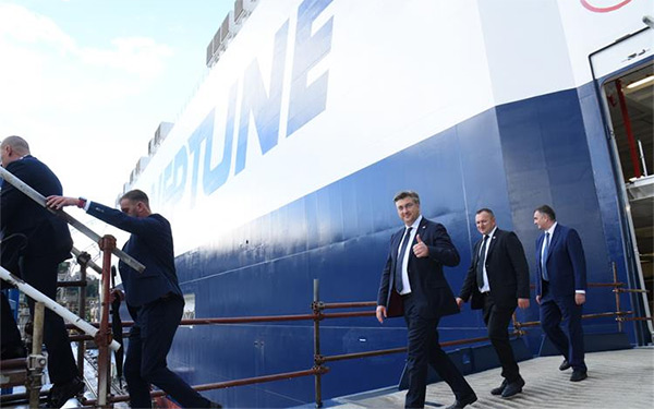 »Veliko je zadovoljstvo danas uime hrvatske Vlade biti na ovako važnom događaju koji pokazuje da u Hrvatskoj žive i industrijska proizvodnja i brodogradnja«, kazao je premijer Plenković na svečanoj primopredaji broda Neptune Barcelona u reiječkom brodogradilištu 3. maj