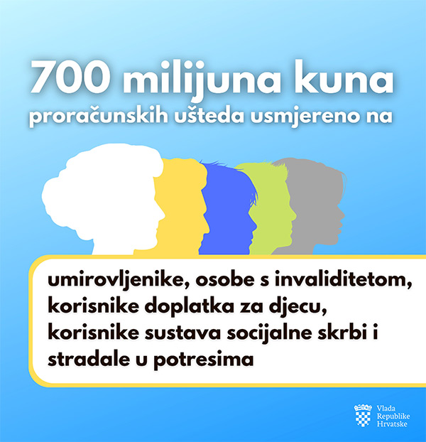 700 milijuna kuna jednokratne novčane pomoći umirovljenicima, korisnicima prava u sustavu socijalne skrbi te stradalima u potresu