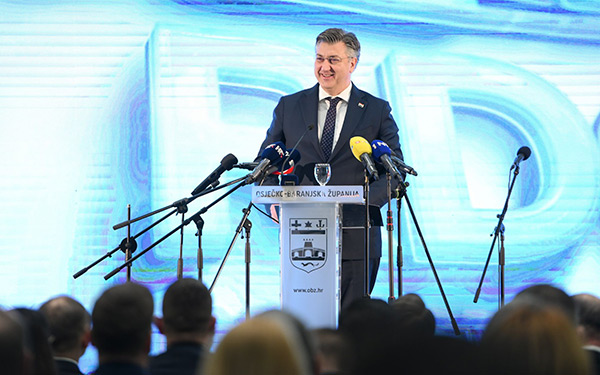 Pohvalivši Regionalni distribucijski centar za voće i povrće, koji je danas otvoren u Osijeku, premijer Plenković podsjetio je na brojne druge projekte što ih je Vlada u proteklih 7 godina provela u Slavoniji