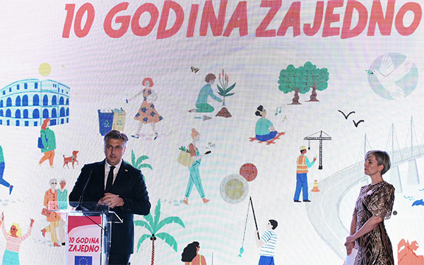 Deseta obljetnica članstva Hrvatske u Europskoj uniji prilika je da svi zajedno kažemo koliko se ponosimo strateškim postignućima hrvatskoga naroda u tek nešto više od tri desetljeća neovisnosti, poručio je premijer Andrej Plenković