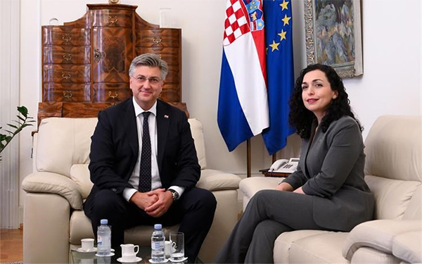 Predsjednik Vlade Andrej Plenković sastao se s kosovskom predsjednicom Vjosom Osmani, koja boravi u prvom službenom posjetu Hrvatskoj