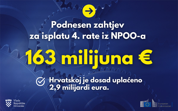 Vlada je uputila Europskoj komisiji četvrti zahtjev za isplatu sredstava iz Mehanizma za oporavak i otpornost u okviru Nacionalnog plana oporavka i otpornosti, koji znatno pridonosi rastu hrvatskog gospodarstva