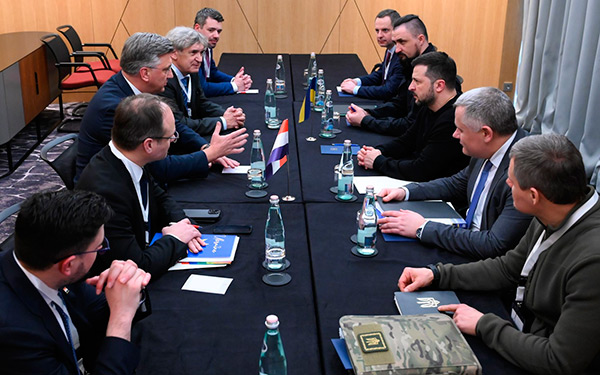 Premijer Plenković kazao je da su se glavne teme sastanka odnosile na daljnju potporu Hrvatske Ukrajini, naročito u području razminiranja, procesuiranja ratnog zločina te nastavak najšire političke, gospodarske, diplomatske, humanitarne i vojne podrška Hrvatske Ukrajini.