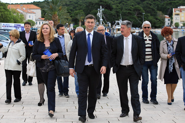 U Makarskoj je kandidate dočekao povjerenik HDZ-a Ivo Kosović. U svom govoru Plenković je rekao da su ovi europski izbora važni za Hrvatsku i za Dalmaciju, ali i za daljnja politička zbivanja u Hrvatskoj. Istaknuo je kako su hrvatski građani razočarani nesnalaženjem Kukuriku koalicije, aktualnom gospodarskom situacijom i socijalnom situacijom u zemlji. Hrvatska nema vremena za nastavak lošeg upravljanja, stoga su europski izbori prigoda za određenje smjera kojem će ići Hrvatska, ali i Europa kao politički projekt kojem smo se priključili u srpnju prošle godine, poručio je Plenković.