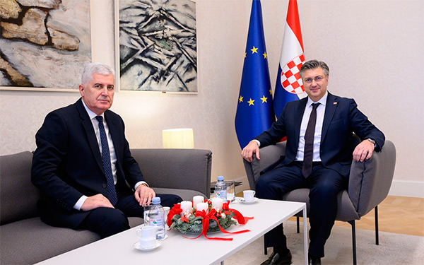 Predsjednik Vlade Andrej Plenković primio je predsjednika Hrvatskog narodnog sabora BiH i predsjedavajućeg Doma naroda Parlamentarne skupštine BiH Dragana Čovića