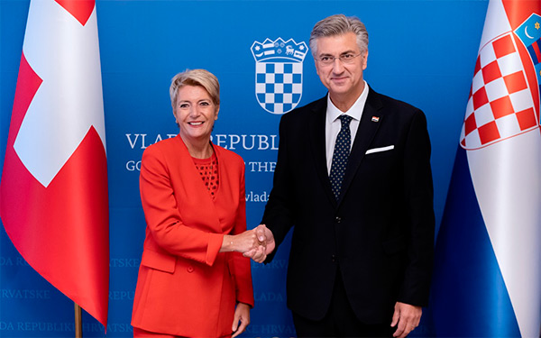 Predsjednik Vlade Andrej Plenković primio je predsjednicu Švicarske Konfederacije Karin Keller-Sutter, koja boravi u posjetu Hrvatskoj