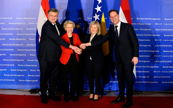 Predsjednica Europske komisije Ursula von der Leyen te premijeri Hrvatske i Nizozemske Andrej Plenković i Mark Rutte poručili su iz Sarajeva da Bosna i Hercegovina doista ima priliku za otvanje pregovora o članstvu u Europskoj uniji