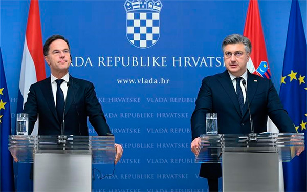 Premijeri Andrej Plenković i Mark Rutte pohvalili su osobito gospodarsku suradnju dviju zemalja, izrazili zadovoljstvo suradnjom na važnim pitanjima za Europsku uniju te skazali snažnu podršku Ukrajini