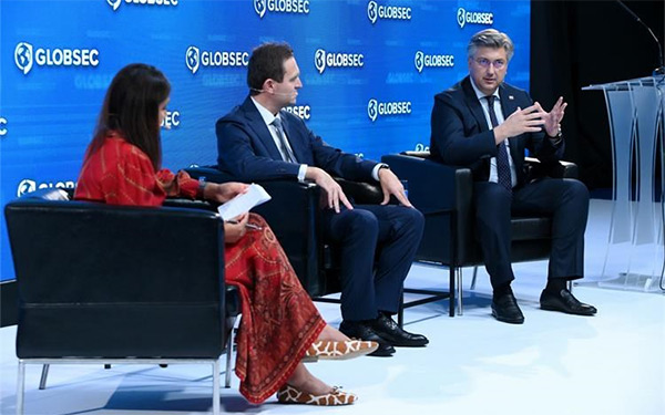 Predsjednik Vlade Andrej Plenković sudjelovao je u raspravi pod naslovom »Fronte demokracije: Globalne posljedice rata« na GLOBSEC 2023 Forumu u Bratislavi, zajedno s predsjednikom slovačke vlade L'udovítom Ódorom