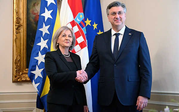 Predsjednik Vlade Andrej Plenković primio je predsjedateljicu Vijeća ministara Bosne i Hercegovine Borjanu Krišto, koja boravi u službenom posjetu Hrvatskoj