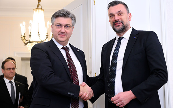 Predsjednik Vlade Andrej Plenković primio je ministra vanjskih poslova Bosne i Hercegovine Elmedina Konakovića, koji boravi u službenom posjetu Hrvatskoj
