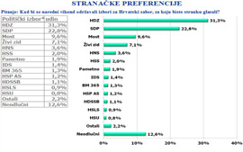 Redovito mjesečno istraživanje CRO Demoskop u travnju pokazuje da je HDZ s izborom od 31,3% uvjerljivo vodeća stranka, a premijer Plenković najpozitivniji političar po izboru 21,8% ispitanika