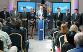 Andrej Plenković predstavio je HDZ-ov izborni program »Gospodarski rast, nova radna mjesta i društvena pravednost« zajedno s voditeljicom radne skupine za izradu programa Ivanom Maletić, ministrom financija Zdravkom Marićem...