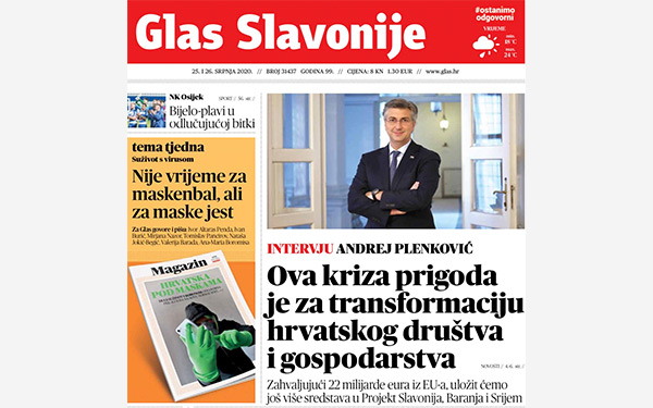 U prvom intervjuu nakon što je HDZ-ova vlada dobila povjerenje u Hrvatskom saboru premijer Plenković govori za Glas Slavonije o prvim reformama te korištenju europskih sredstava što ih je Hrvatska osigurala