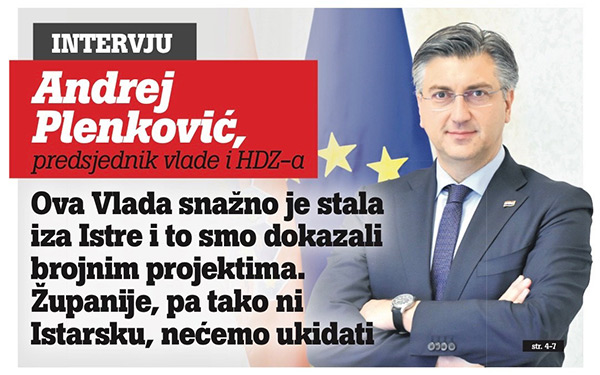 U intervjuu s glavnim urednikom Glasa Istre Robijem Frankom predsjednik Vlade i HDZ-a Andrej Plenković govori o projektima za razvoj Istre, HDZ-ovu izbornom programu te borbi protiv posljedica pandemije