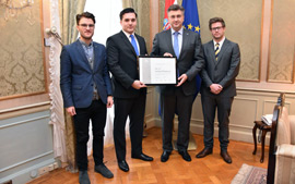 Premijer Plenković primio je posjet predsjednika ELSA-e Hrvatske Matea Matijevića, bivšeg dopredsjednika ELSA-e International Vedrana Stankovića i bivšeg predsjednika ELSA-e Hrvatske Filipa Kavrana