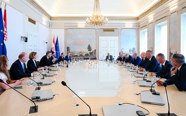 Predsjednik Vlade Andrej Plenković primio je predstavnike Viteškog alkarskog društva Sinj, na čelu s predsjednikom Stipom Jukićem, koje ga je upoznalo sa svojim aktivnostima u ovoj godini i s pripremama za 310. alkarske svečanosti