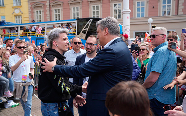 »Jutros sam čestitao Marku i mislim da je bio briljantan«, kazao je premijer Andrej Plenković uoči dolaska Baby Lasagne na glavni zagrebački trg i dodao da ima sjajnu energiju, neposrednost, nastup i odličnu pjesmu