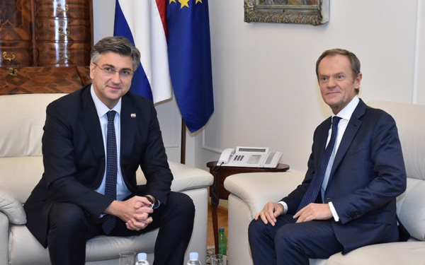 Predsjednik Vlade Andrej Plenković primio je predsjednika Europskog vijeća Donalda Tuska, koji je za svoj posljednji posjet u tom svojstvu odabrao Hrvatsku